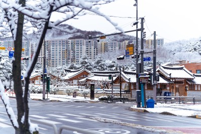 차가운 공기 속에서도 한옥의 따스한 기와지붕은 도시에 고요한 쉼을 선물한다